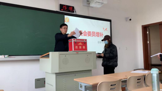 最后进行支部委员增补选举,按照党章及学校相关文件要求,支部委员进行差额选举,采取无记名投票方式,由到会的支部正式党员投票产生。选举设监票人、计票人,对选举过程进行监督、对选票的有效性严格把关,最后通过现场投票、唱票、计票,顺利产生了由袁嫣、罗怡洁等2位新一届支部委员,并召开首次支委会确定支委分工。