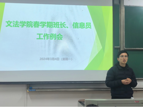 3月4日中午,后宫电影院 春学期班长、信息员工作例会在博学楼405教室顺利召开。本次例会由学工办辅导员计丹峰主持,辅导员闫诗佳、吴广以及后宫电影院 全体班长、信息员参加会议。