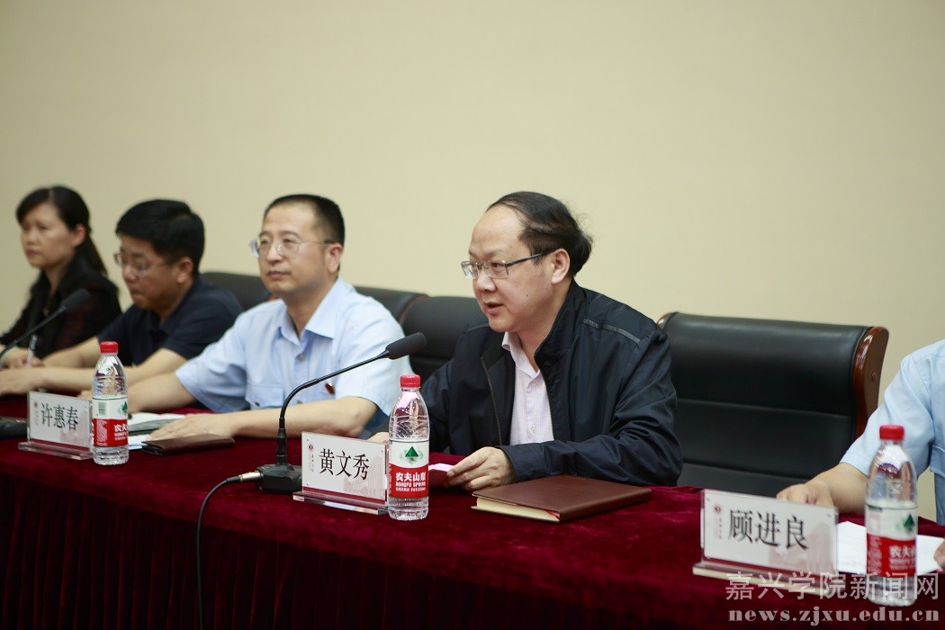 黄文秀代表学校致辞,他对嘉兴市中级人民法院多年来对法学专业人才培养的支持和帮助表示感谢。他指出,进一步深化院校合作,构建长期稳定有效的院校协同机制,有利于双方在人才培养、学科建设、科学研究等方面实现资源共享、合作共赢。他希望,校院双方通力合作,资源共享,共同产出更多更高质量的合作成果。