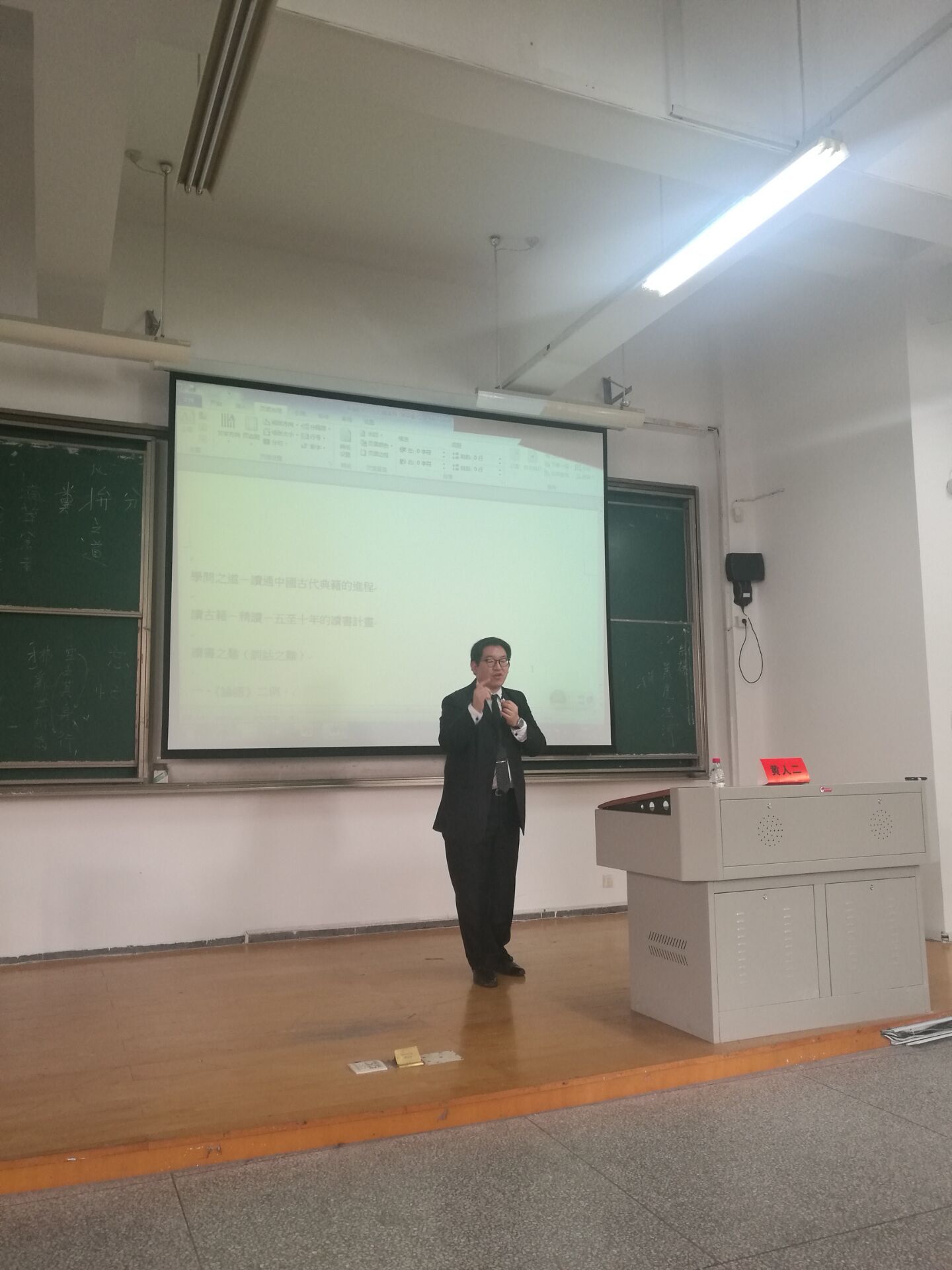 黄人二教授从自己在台湾大学的学士与硕士阶段的学习谈起,对于研读中国古代典籍的理论问题进行系统深入的阐述。在理论阐发的基础上,列举了《论语》、《庄子》、《孟子》等书中的例子,谈及古籍阐释中应重视古音学。讲座中,黄人二教授勉励在座的同学要志存高远,在中国古代典籍的学习与研究中更上层楼,攀登高峰。