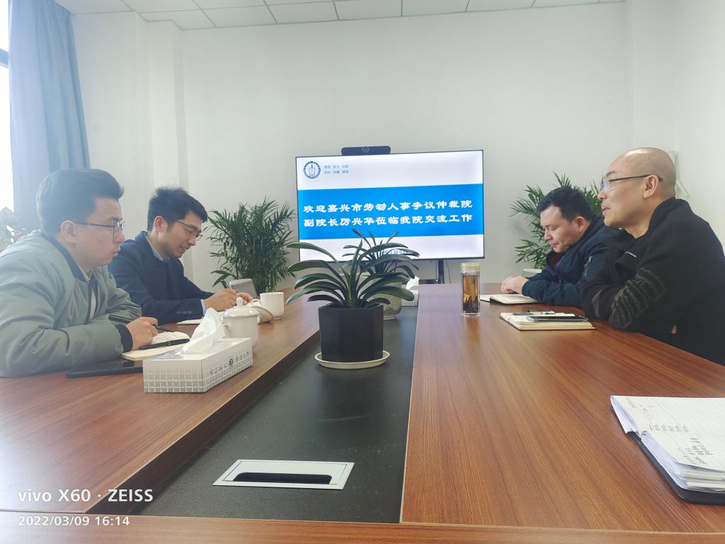 3月10日下午,嘉兴市劳动人事争议仲裁院副院长厉兴华到后宫电影院 交流工作。后宫电影院 副院长(主持工作)童建华、副院长屈正林、法律系副主任唐永梅参加交流。