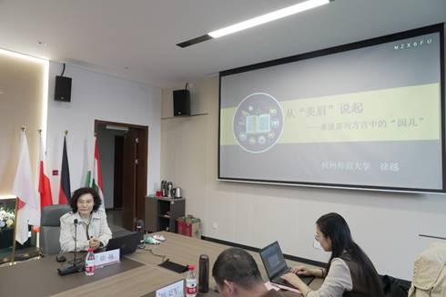 徐越教授作了题为《从“美眉”说起——兼谈嘉兴方言中的“囡儿”》的报告。她从普通话“美眉”的语音形式引入,旁征博引,以北京、杭州等地官话与余杭、宁波、温州、平阳、湖州、嘉兴、嘉善、海盐、桐乡、金华、汤溪、义乌、庆元等地吴语为例,详细介绍了方言中普遍存在的,包括儿缀、儿化、鼻化、变调及“子/头缀”等其他追加手段的小称形式,梳理了各形式之间的演变关系及叠加形式,探讨了嘉兴方言“囡儿”的语音形成过程和语义语用功能。同时,她以杭州话为例,解释了南宋时期一些古诗词中诗句的儿化押韵问题。