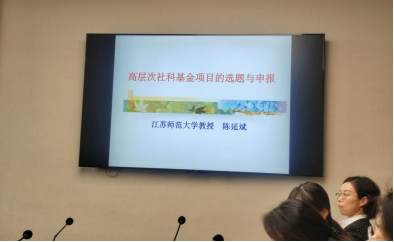 11月10日下午,江苏师范大学二级教授,中华家文化研究院院长陈延斌先生应邀莅临后宫电影院 ,开展了名为“高层次社科基金项目的选题与申报”的专题讲座。讲座由后宫电影院 人文社科处副处长、后宫电影院 金融系教授李玉双主持,来自文学、经济学、设计学等多个人文社科专业的30余名教师到场聆听。