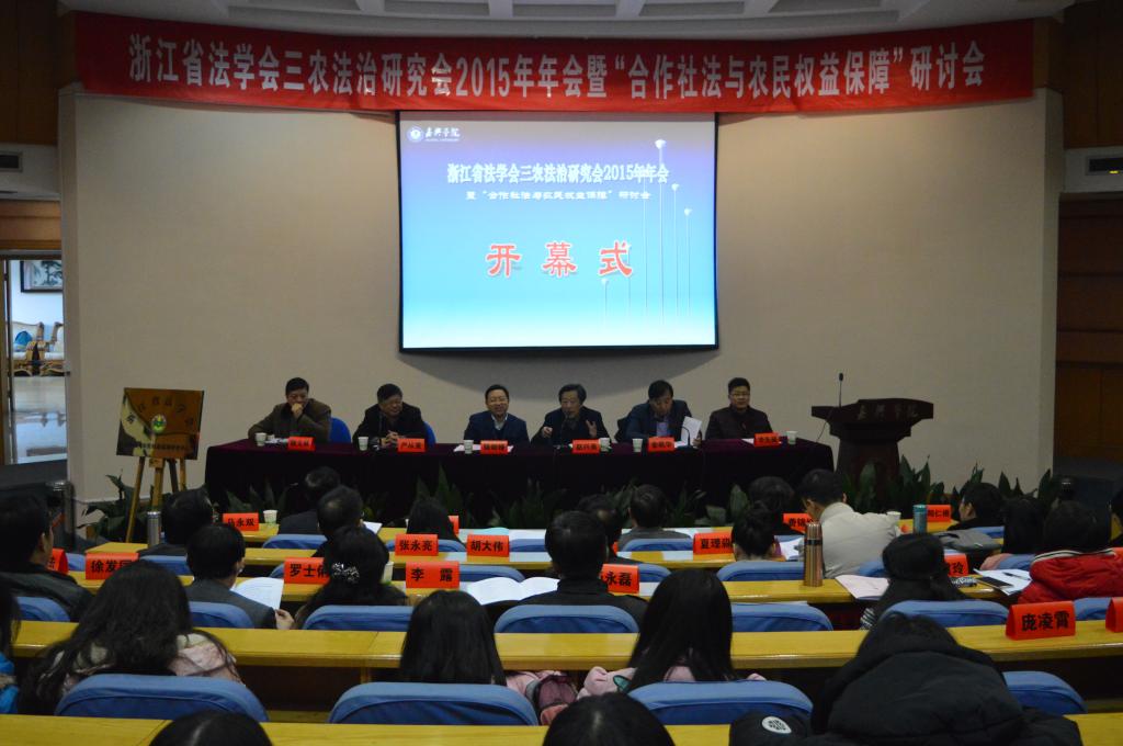 承办。省法学会党组成员、专职副会长陆剑锋,省政府参事、浙江省农业厅原党组副书记、副厅长、浙江省法学会三农法治研究会名誉会长赵兴泉,浙江农林大学副校长、浙江省法学会三农法治研究会会长金佩华教授,嘉兴学院副校长严从荃教授,省法学会研究部副调研员李先福以及三农法治研究会副会长、常务理事、理事和来自省内外高校与实践部门的论文作者、师生等90余人出席会议。