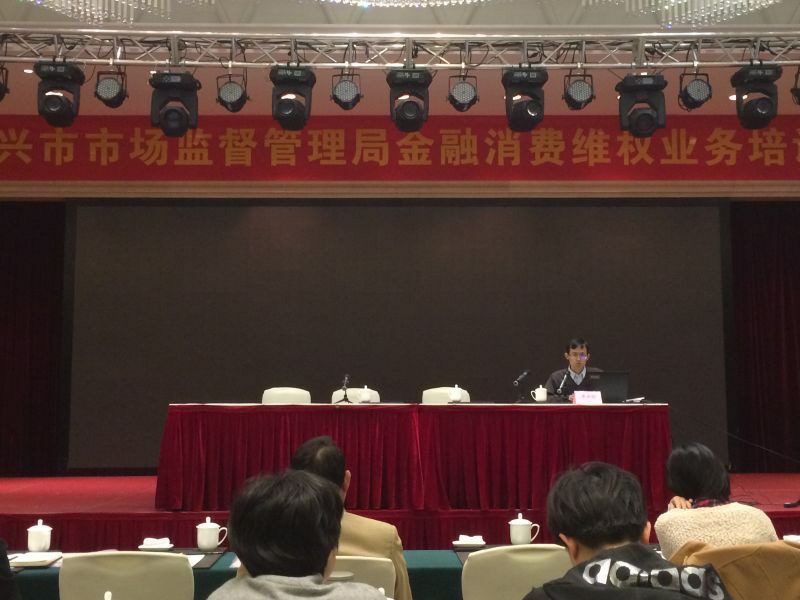 副教授李勇军博士11月9日在豪仕登大酒店为参加“嘉兴市市场监管局金融消费维权业务培训”的学员作“《消费者权益保护法》:到底离我们有多远”的主题报告。