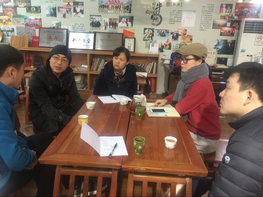 1月13日,后宫电影院 党委书记洪坚、副院长童建华、中文系主任曲正林和学工办主任虞岚一行四人到孔子学堂调研交流。孔子学堂执行院长竹韦红、南湖区解放街道宣传委员朱彦与洪坚书记一行就如何与嘉兴孔子学堂和学堂所在地解放街道的国学社区一起合作办学进行深入交流。同时,双方在非遗研究等多方面的合作达成初步协议。