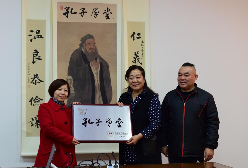 邹丽妍主任代表中国孔子基金会为学校颁发 “孔子学堂”牌匾