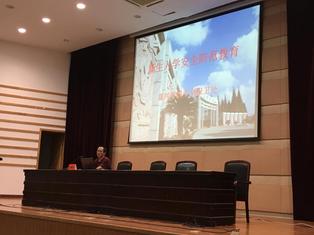 最后,保卫处治安管理科科长金为国老师为同学们开展安全教育讲座,通过一个个活生生的案例,向新同学进行防骗、防盗、人身、消防、交通安全警示教育,告诫同学们铭记校园安全的重要性,期盼新同学能顺利、安全且有意义地度过大学的四年。