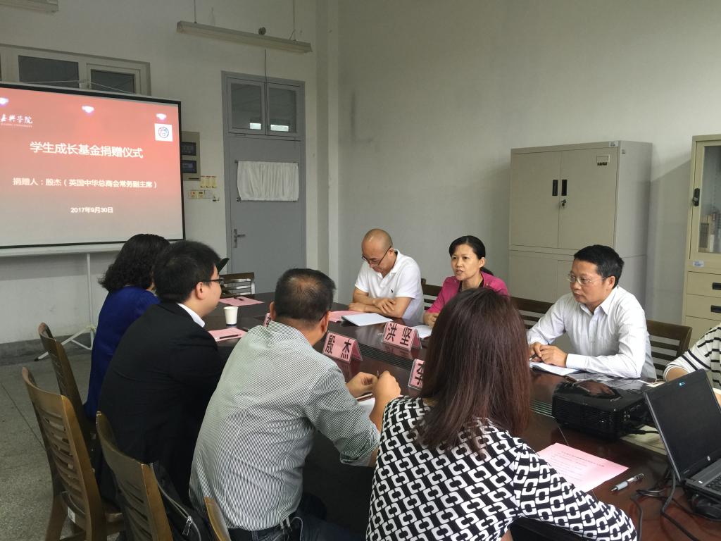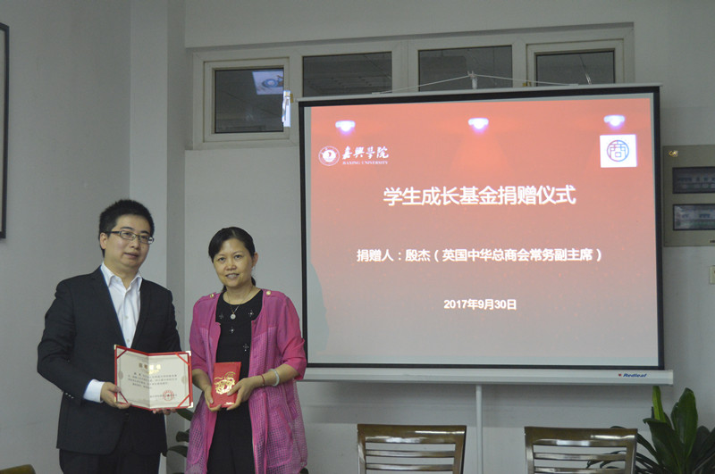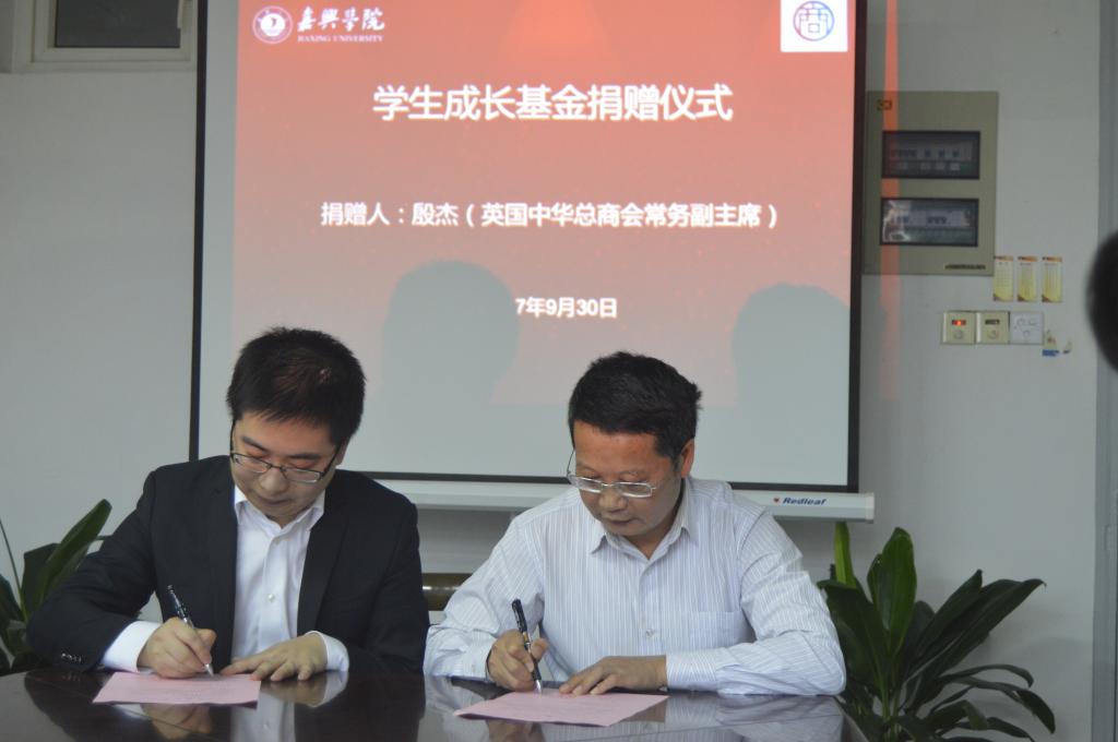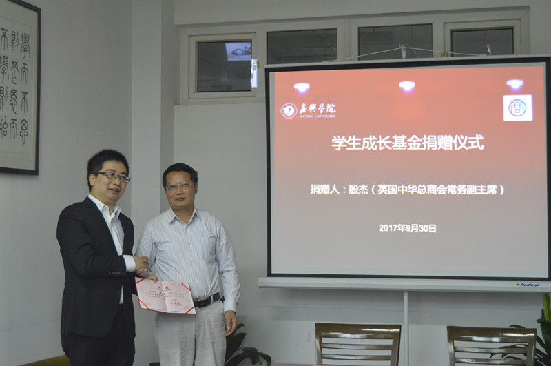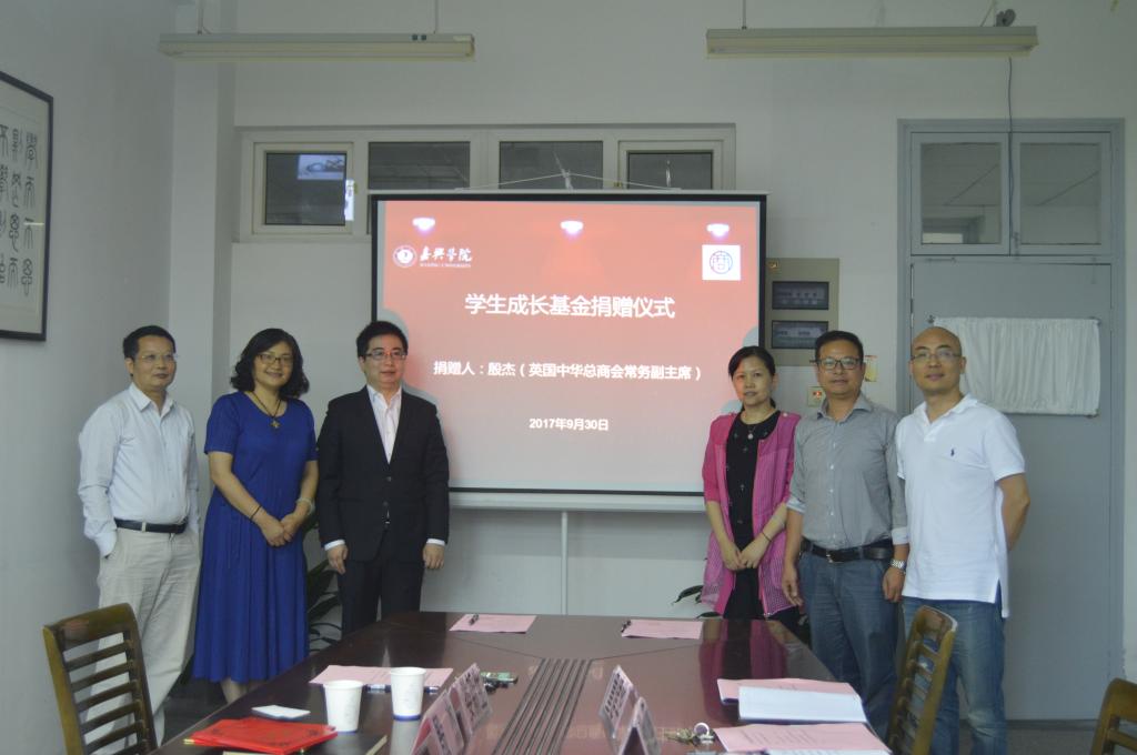 9月30日上午,殷杰先生爱心助学捐赠仪式在梁林校区1号楼446会议室举行。英国中华总商会常务副主席殷杰先生、嘉兴市侨联主席娄新生、嘉兴市侨联李勇军、后宫电影院