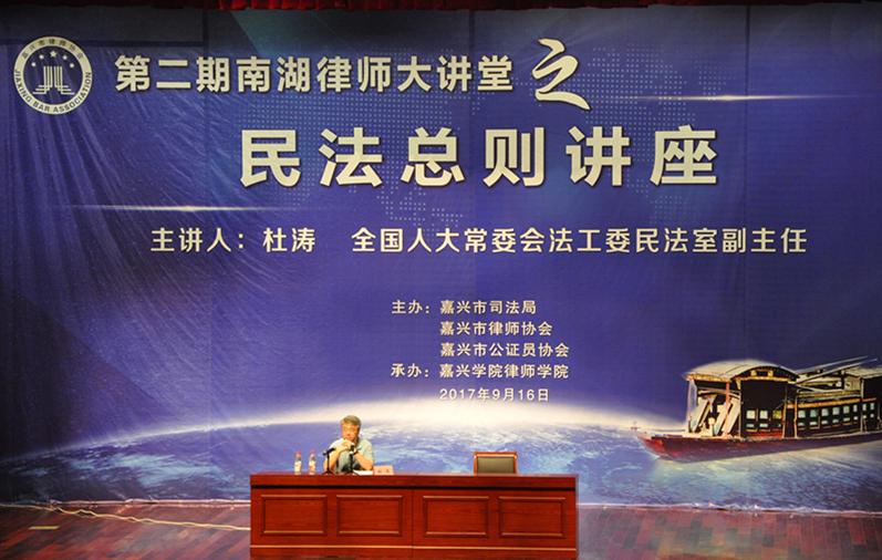 2017年9月16日,“嘉兴市第二期南湖律师大讲堂之《民法总则》专题讲座”在嘉兴学院梁林校区学生活动中心剧场顺利进行。本次讲座,是嘉兴学院律师学院受嘉兴市司法局、嘉兴市律师协会、嘉兴市公证员协会委托承办的、旨在深入学习《民法通则》的大型法学讲座。全市的律师、公证员、公安干警、法官、检察官及嘉兴学院后宫电影院