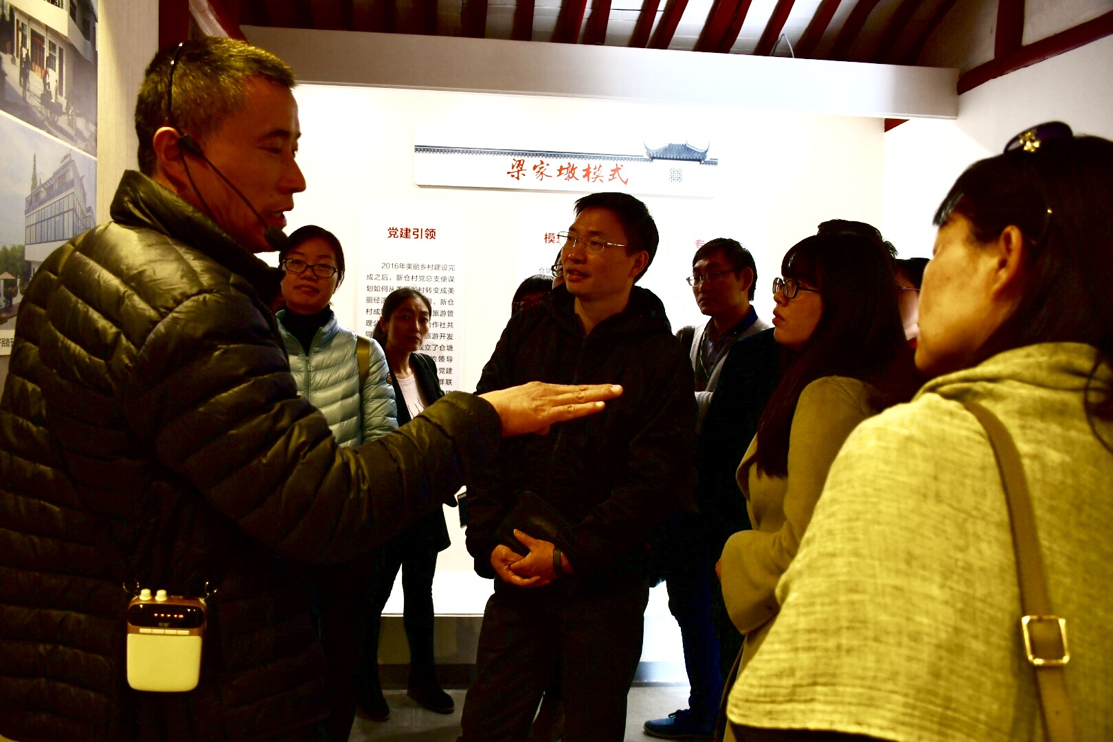 3A景区梁家墩,白墙黑瓦的农家小楼,绿树掩映,炊烟袅袅,湖中碧波荡漾,全体党员在新仓村党总支书记陆永明的带领下,浏览参观美丽的梁家墩,听取梁家墩的发展历程。据陆书记介绍,2017年梁家墩引进专业团队,开创了“村总支全面引领,公司运营管理,村民自主经营”的乡村旅游新模式,村里不少农户把自家农房改造成为餐厅、民宿、咖啡厅等,截至今年7月,梁家墩接待游客达13万人次,半年实现收入达60余万元。梁家墩的发展充分展现了新时代农村发展的新景象。党员们真实地感受了中国特色社会主义在农村取得的成就。
