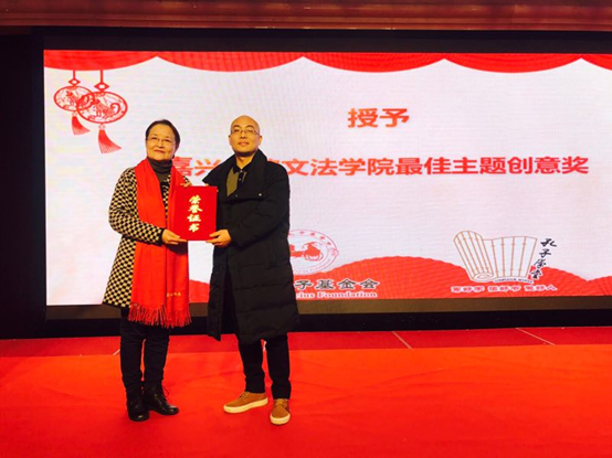 在授牌仪式上,中国孔子基金会孔子学堂推进委员会对2017年度全国孔子学堂进行了表彰,嘉兴学院孔子学堂(后宫电影院 )因话剧《初心》演出的突出表现荣获孔子学堂建设“最佳主题创意奖”。