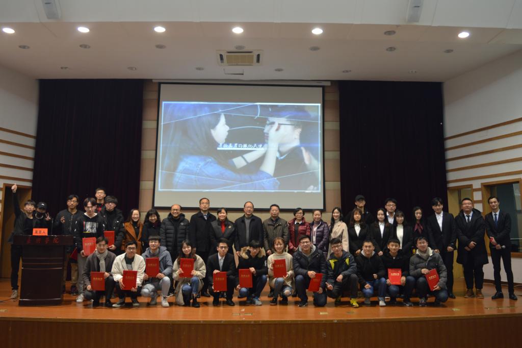 表彰会伊始,由《初心》剧组各组代表及指导教师代表相继上台发言。各位代表均表示,长时间的准备及排练,被初心的故事感动,虽然艰辛,但收获了成长和精神的洗礼,更为难得。代表发言过后,由领导给《初心》剧组各代表和颁奖,并与各组代表合影留念。最后,校党委书记黄文秀讲话,他鼓励《初心》剧组在前一阶段付出的艰苦的努力、肯定2017年收获的良好的社会反响,对初心表达了无限的寄托,希望《初心》剧组再接再厉,开启更加辉煌的2018。
