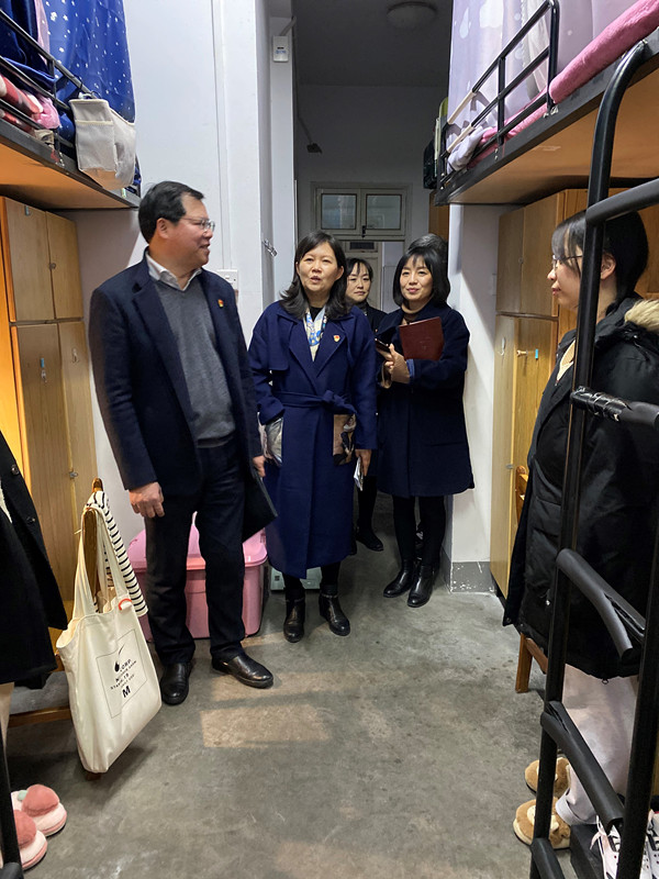 2020年12月7日下午,嘉兴学院党委副书记吴云达一行在后宫电影院 党委书记洪坚、党委副书记虞岚的陪同下走访了后宫电影院 的结队宿舍,看望了宿舍同学,给同学们带去了关心与问候。