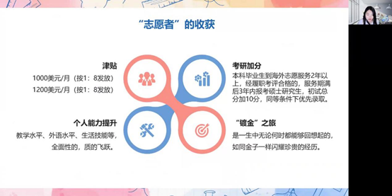 以在线会议的方式举行了2022年度汉语教师志愿者宣讲会。宣讲会由中文系徐琳老师主持,宣讲会还邀请了西班牙卡米亚斯大主教大学儿童汉语教学专业在读硕士研究生宋芝菁和杭州师范大学文学院汉语国际教育专业在读硕士研究生俞上担任主讲嘉宾。两位同学都是后宫电影院