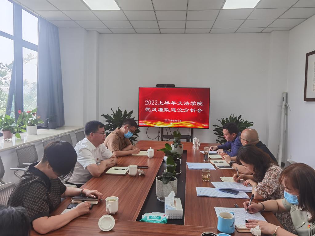 党委在厚德楼268会议室召开了2022上半年党风廉政建设情况分析会。嘉兴学院党委副书记吴云达、校纪委委员费锦红到会指导。本次会议由学院党委书记洪坚主持,班子成员童建华、屈正林、虞岚,党委委员徐琳参加会议,特邀监察员宋伟杰列席会议。