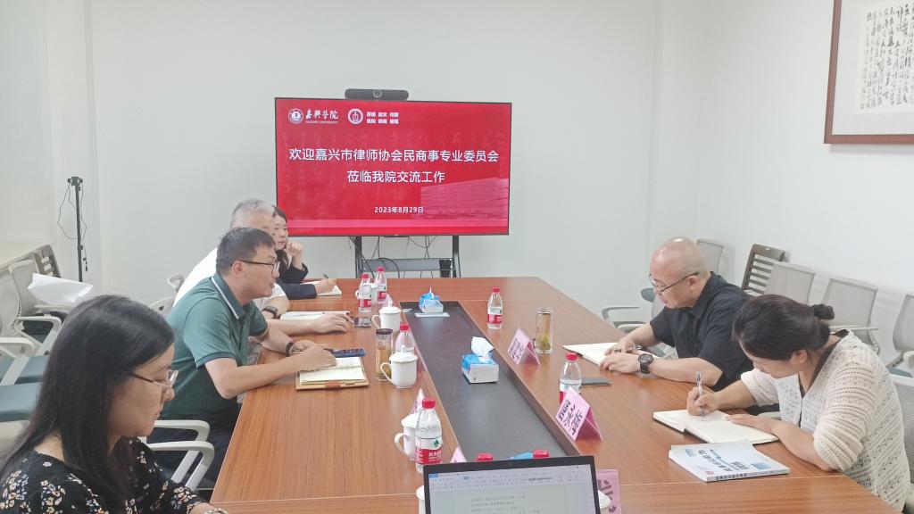 8月29日上午,嘉兴市律师协会副会长岳丛啸等一行6人来后宫电影院 交流工作。学院副院长(主持工作)童建华,法学系主任唐永梅,嘉兴市律协民商事专业委员会主任徐海明律师等参加座谈。