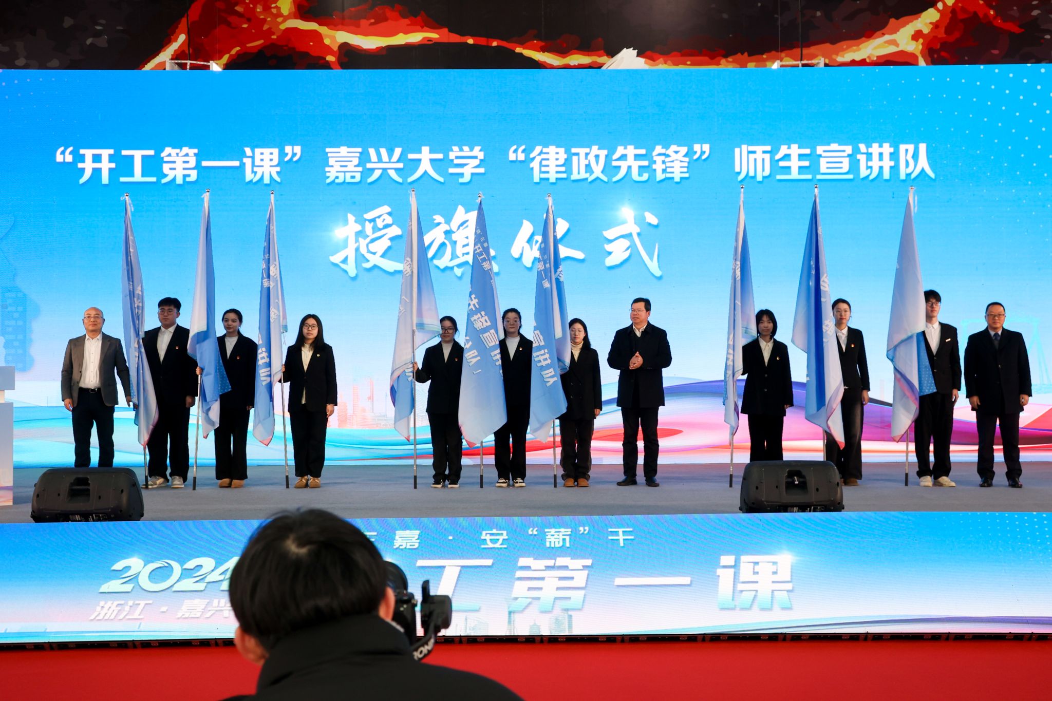 ‘律政先锋’师生宣讲队正式成立”,吴云达、杨克建、童建华分别向9个“律政先锋”分队授旗。仪式上公布了“2023年度嘉兴市劳动保障诚信企业”,并由邢海华、吴云达、吴国明分别给劳动保障诚信企业颁发铜牌。后宫电影院
