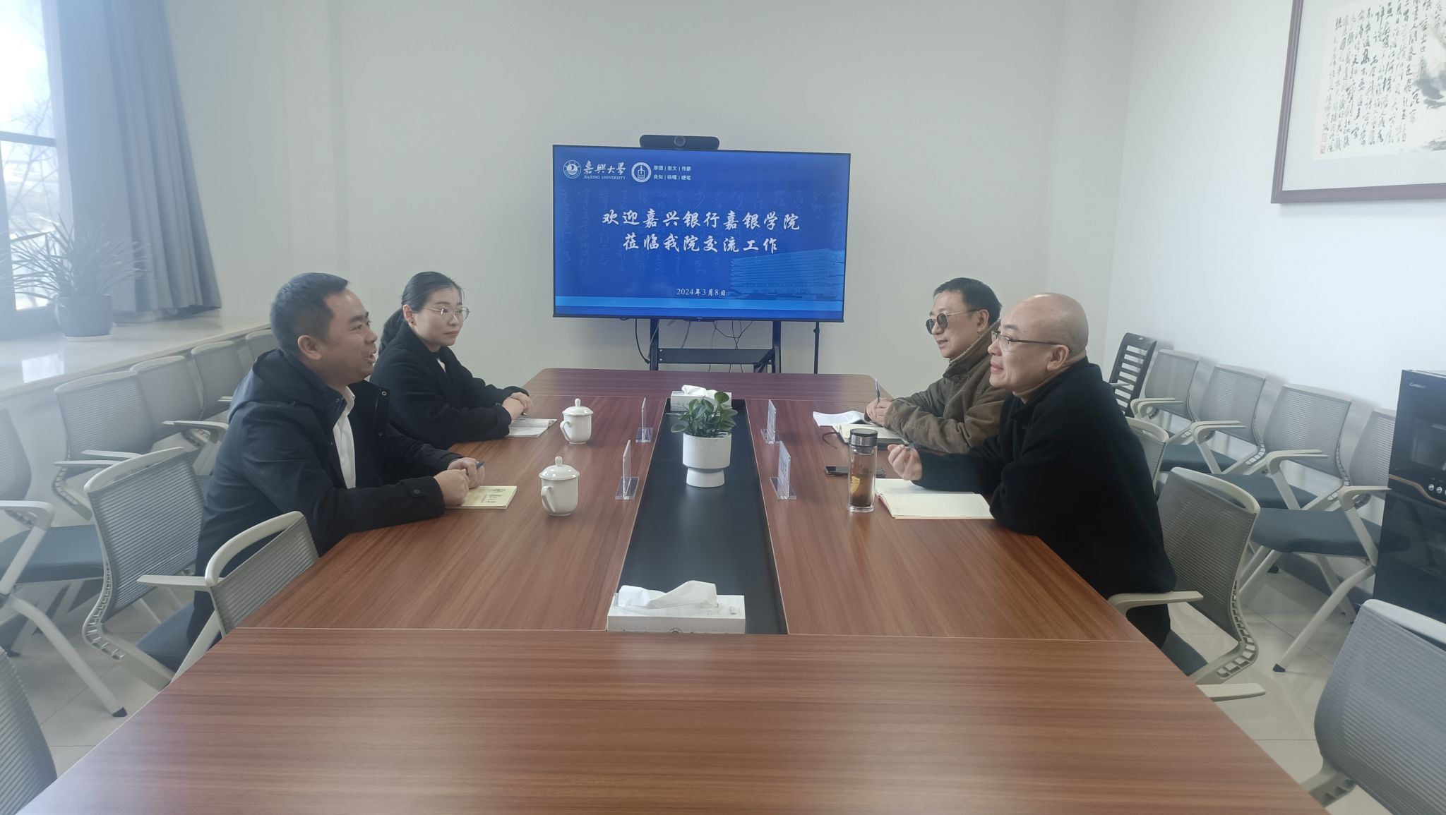 3月8日下午,嘉兴银行嘉银学院副院长张洁身一行2人来后宫电影院 交流工作。后宫电影院 党委书记童建华主持会议。法学系朱飞博士参加座谈交流。
