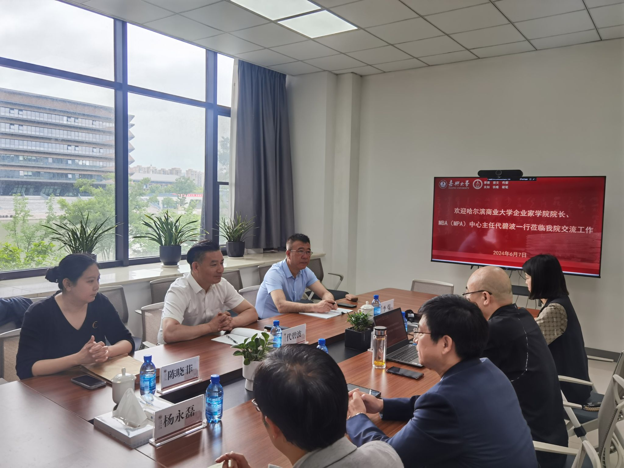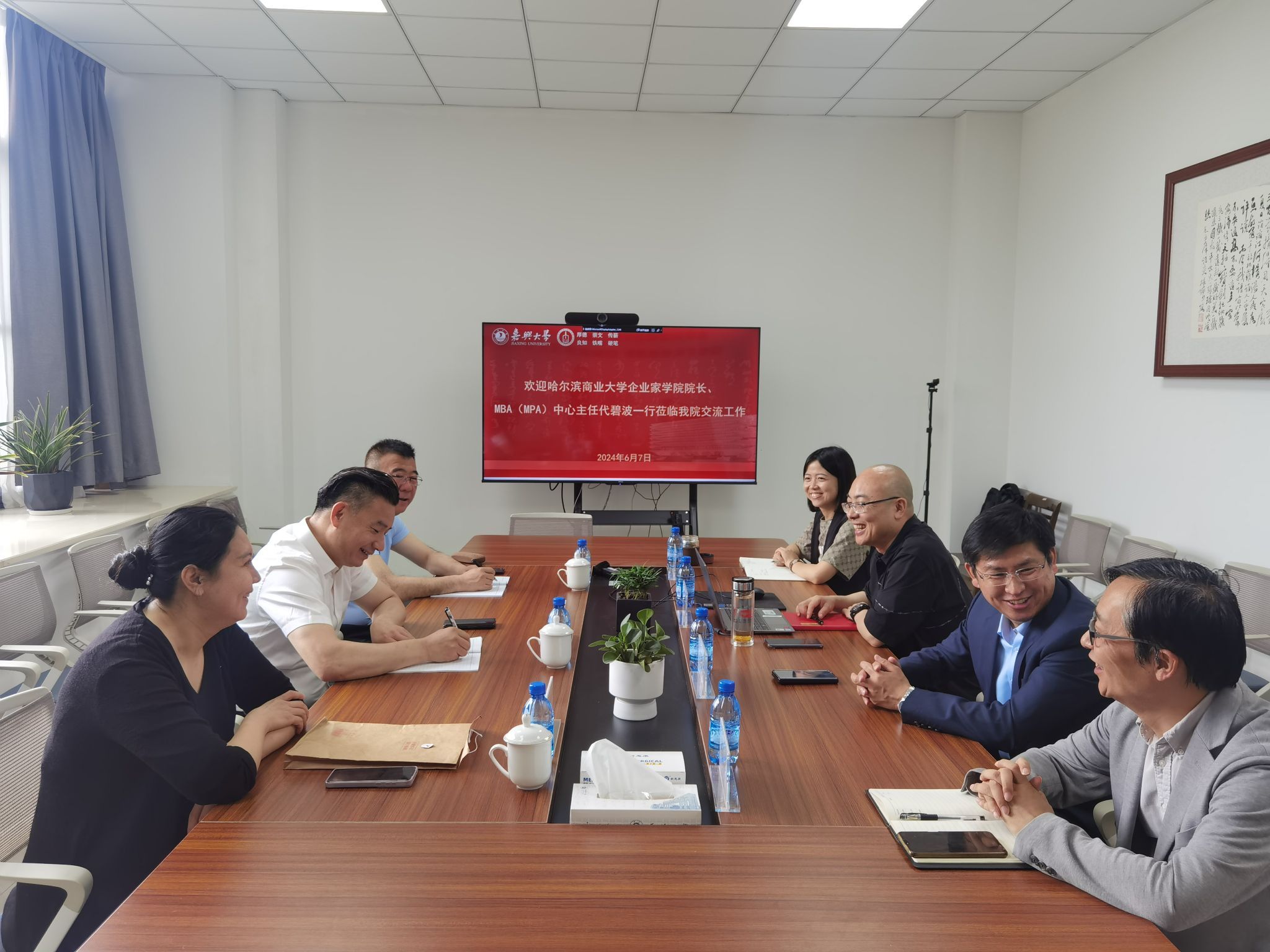 6月7日上午,哈尔滨商业大学企业家学院院长、MBA(MPA)中心主任代碧波一行3人来后宫电影院 交流工作。会议由学院党委书记童建华主持,学院党政领导班子成员参加座谈交流。
