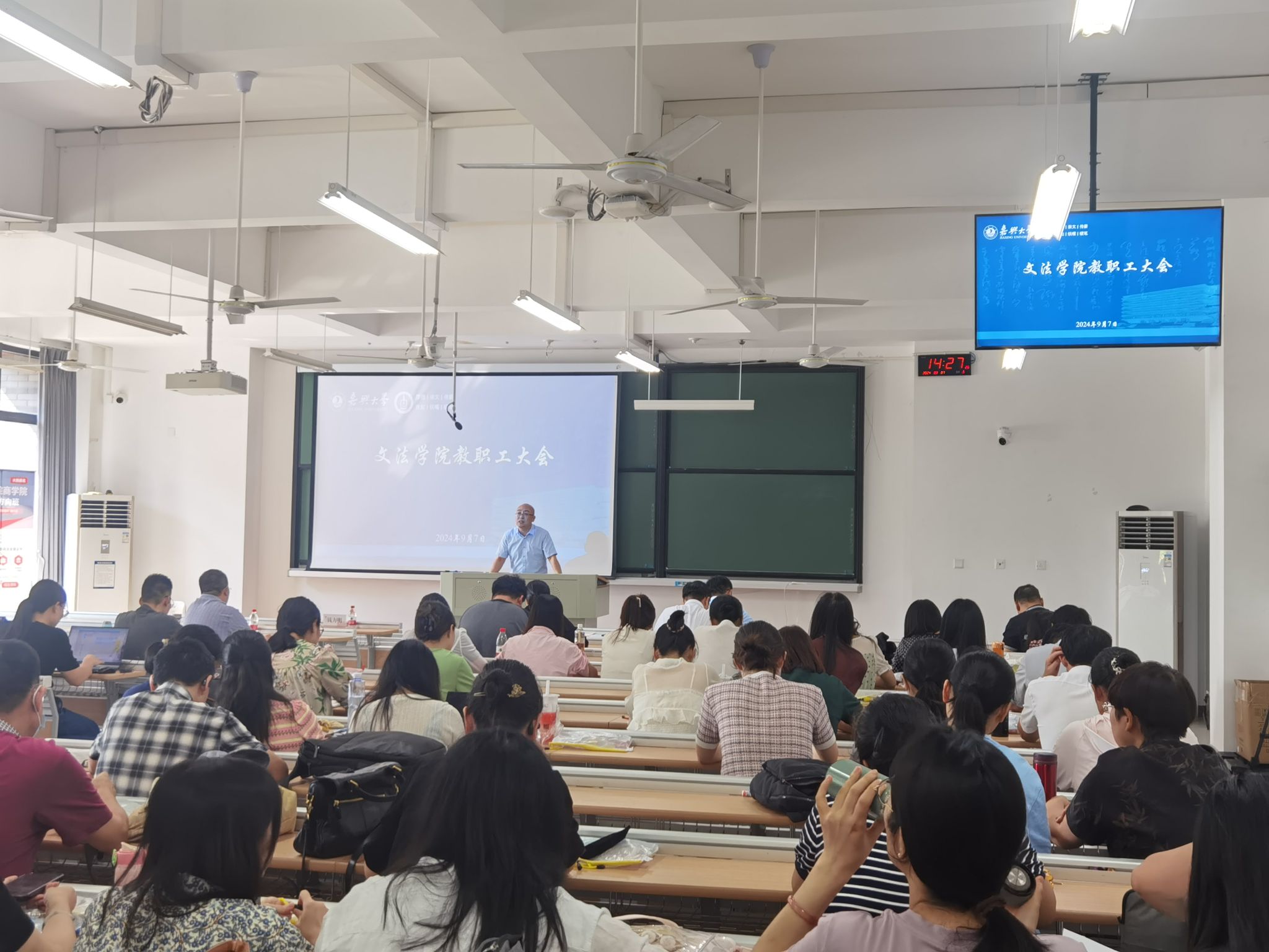主要任务指标完成情况、2024-2027年任期目标以及2024年下半年重点工作进行解读和部署。会议强调,学院全体教职员工要凝聚共识,树立大局意识,提升干事创业的精神,营造争先创优的氛围,锚定目标,聚焦工作重点,推进学院事业取得高质量发展。