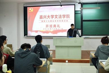 汉语言231班的石烨晨同学作为学生代表向党组织表态,生逢其时,重担在肩。作为红船旁大学的学生我们要以高涨的热情大力发扬红船精神,坚定理想信念,立鸿鹄之志,练就过硬本领,修栋梁之才。在习近平新时代中国特色社会主义思想的指导下积极投身于实现中华民族伟大复兴中国梦的实践,坚持知信行合一,学思用贯通。争取在党课结业时递交一份满意的答卷,早日成为一名合格的共产党员。开班典礼结束后进行了党校第一课:“正确认识中国共产党及党的基本理论、基本路线、基本方略”的学习。