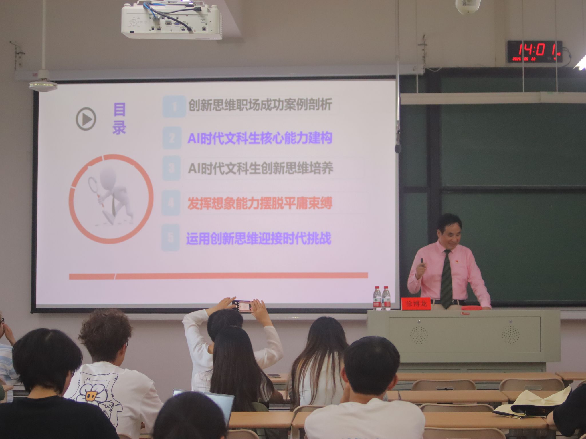 徐博龙研究员的讲座立足时代前沿,为文科生在智能时代的成长成才提供了极具启发性的认知框架,深化了同学们对创新思维战略价值的理解,对同学们提升自身创新思维能力、应对未来职场挑战提供了有益的方法。