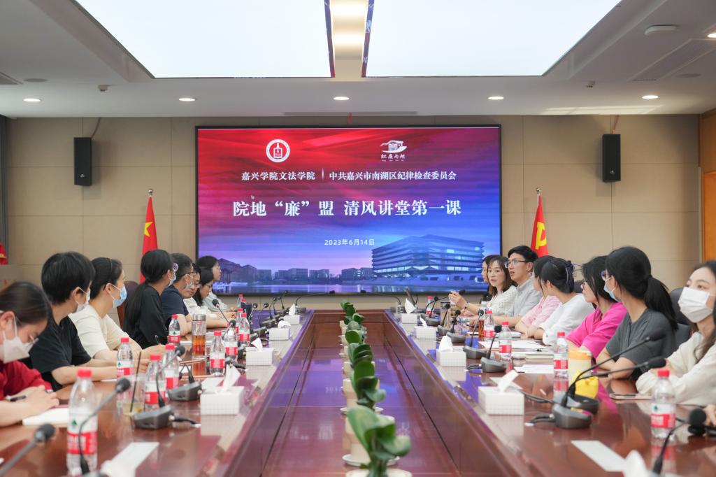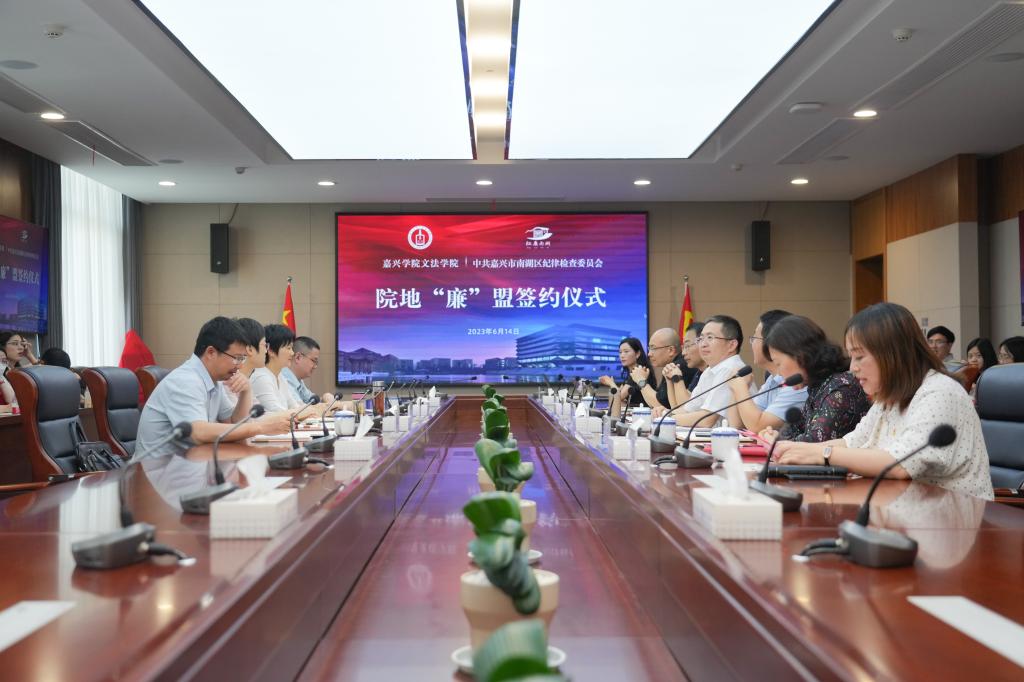 和嘉兴市南湖区纪委共同发起的院地“廉”盟成立仪式在梁林校区举行。嘉兴学院党委委员、纪委书记、省监委驻嘉兴学院监察专员陈新友,嘉兴市南湖区纪委书记黄舰,嘉兴学院后宫电影院