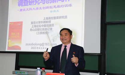 4月4日,后宫电影院 在厚德楼112教室举办“调查研究与创新写作”的主题讲座。本次讲座邀请了上海高校智库研究员徐博龙教授,后宫电影院 50余名学生参加本次讲座。