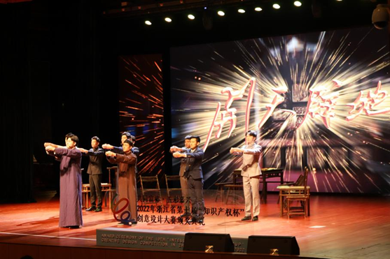 2022年11月8日下午,话剧《初心》片段——南湖会议亮相于浙江省第十届“知识产权杯”创意设计大赛颁奖典礼。话剧《初心》贯彻落实习近平总书记关于知识产权的重要讲话精神,打造多个话剧版本,授权多家单位演出资格,在保护学校知识创新成果的同时让红船精神以多姿多彩的方式传播。