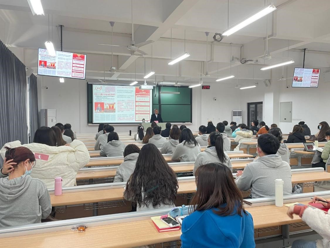 法学学科党支部、法学专业党支部全体党员及第三期初心班成员参加报告会。