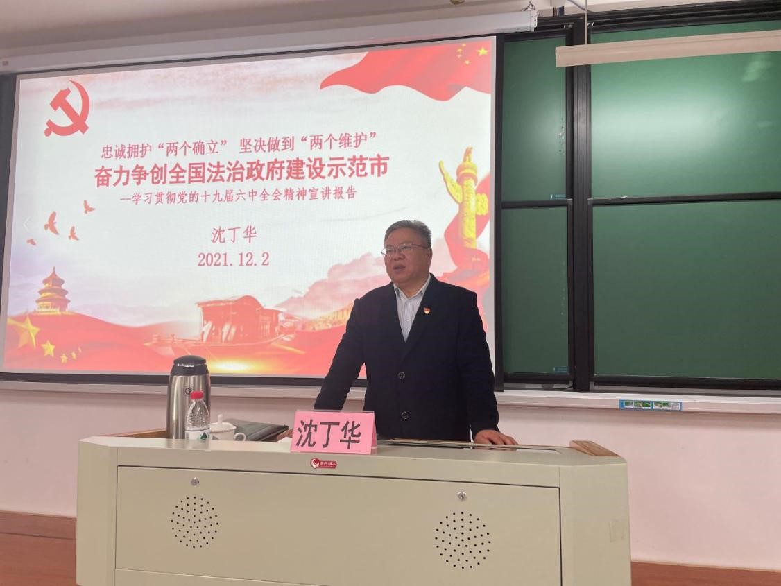 报告会上,沈丁华以《忠诚拥护“两个确立”、坚决做到“两个维护”,奋力争创全国法治政府建设示范市》为题,分享了学习贯彻党的十九届六中全会精神的心得,介绍了嘉兴法治政府建设的经验、问题与对策,为大家带来了一场精彩的报告。