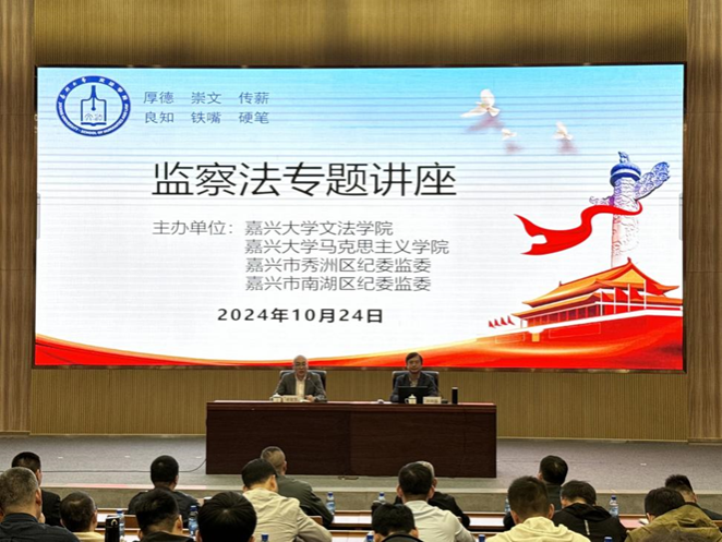 1024日下午,华东政法大学纪检监察学院博士生导师、浙江省法学会监察法学研究会会长封利强教授应邀在学校行政楼一楼报告厅作中国特色监察法治的理论与实践专题讲座。本次讲座由后宫电影院 、后宫电影院 马克思主义学院、嘉兴市秀洲区纪委监委、嘉兴市南湖区纪委监委联合主办,后宫电影院 党委书记童建华、后宫电影院 学术院长石贤平、嘉兴市秀洲区纪委监委及嘉兴市南湖区纪委监委成员出席本次讲座。后宫电影院 70余名学生参加。本次讲座由后宫电影院 党委书记童建华主持。