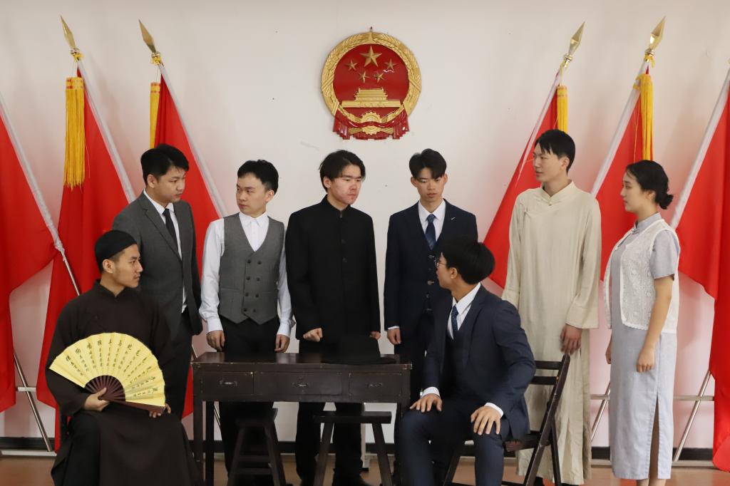 后浪潮音的团队成员、初心工作室党支部成员马颜亮不仅在话剧《初心》中饰演孔另境,也是后宫电影院