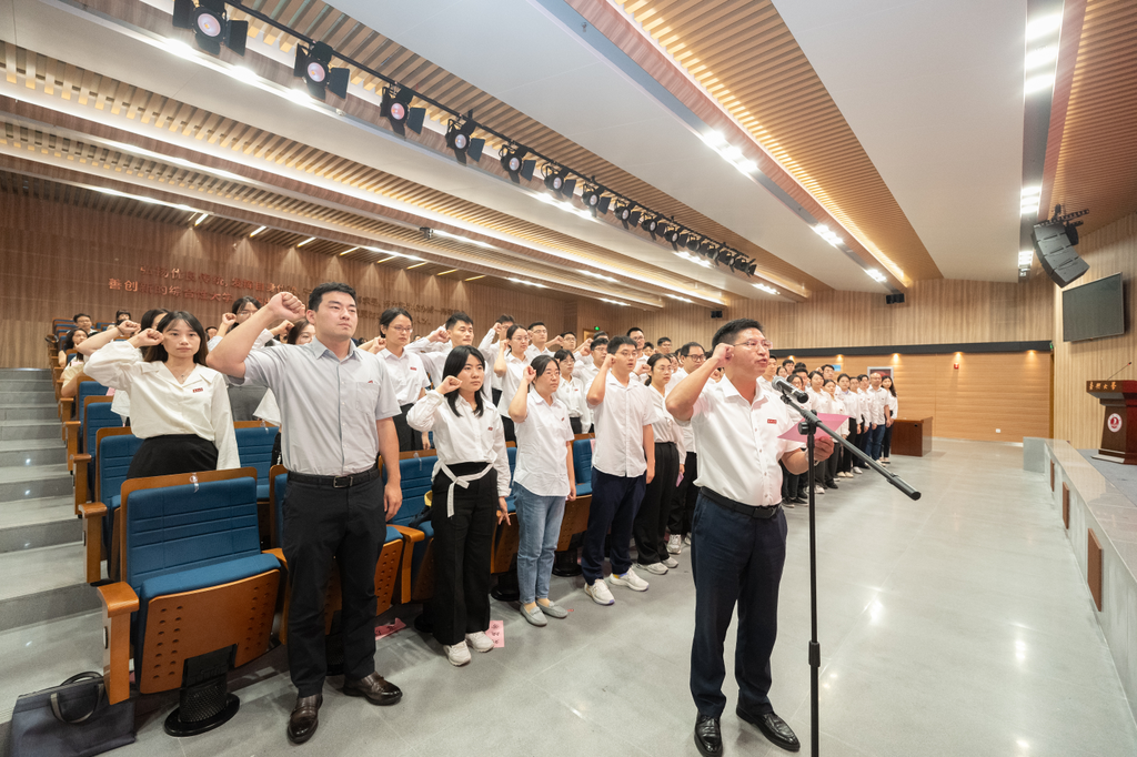 学术院长石贤平作为新入职教师,带领全体新入职教师集体宣誓,表达努力成长为“四有好老师”,为建设有特色、善创新的综合性高水平大学,为培养德智体美劳全面发展的社会主义建设者和接班人接续奋斗的决心。